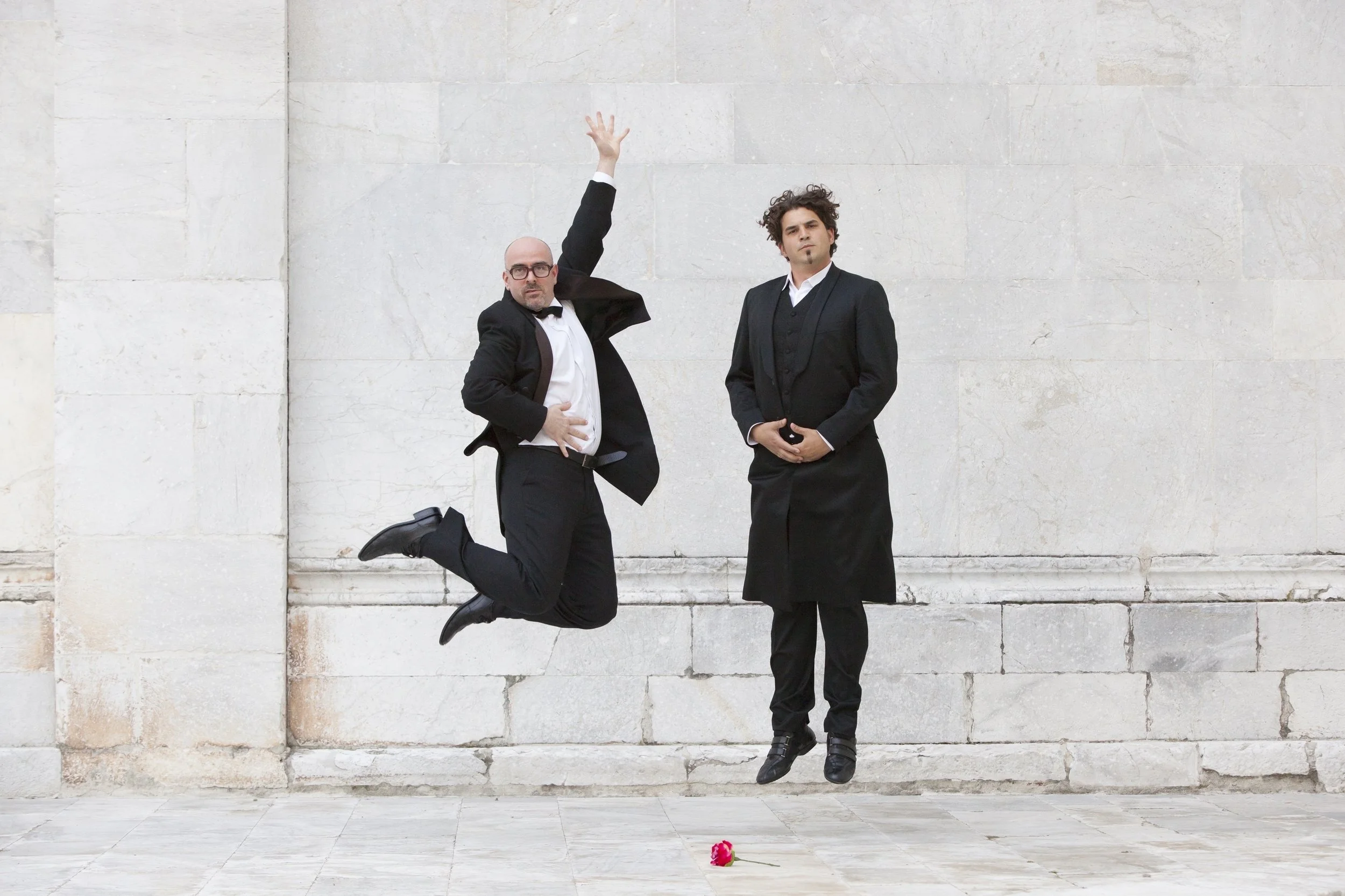 Renowned violinist Brad Repp and pianist/actor Aldo Gentileschi are the madness and brilliance behind the musical comedy that is Duo Baldo. Their critically acclaimed concerts combine virtuosic performances, theatrical humor and pop culture.Duo Baldo made their debut with Italian tenor Andrea Bocelli in 2004. In February 2006, they won first prize at the National Short Theater Competition in Florence. After winning first prize at the 2009 Musicomicontest, they performed at the opening of the 2010 Salzburg Festival. Other prestigious credentials include performances at Tokyo’s Musashino Cultural Foundation, the Shanghai Concert Hall, the Beijing Concert Hall, the Chamber Music Society of Trieste, the Festival Classica Sant Fruitós De Bages in Barcelona, as well as appearances in Brescia, Lugano (Switzerland), Mexico City and Stockholm.